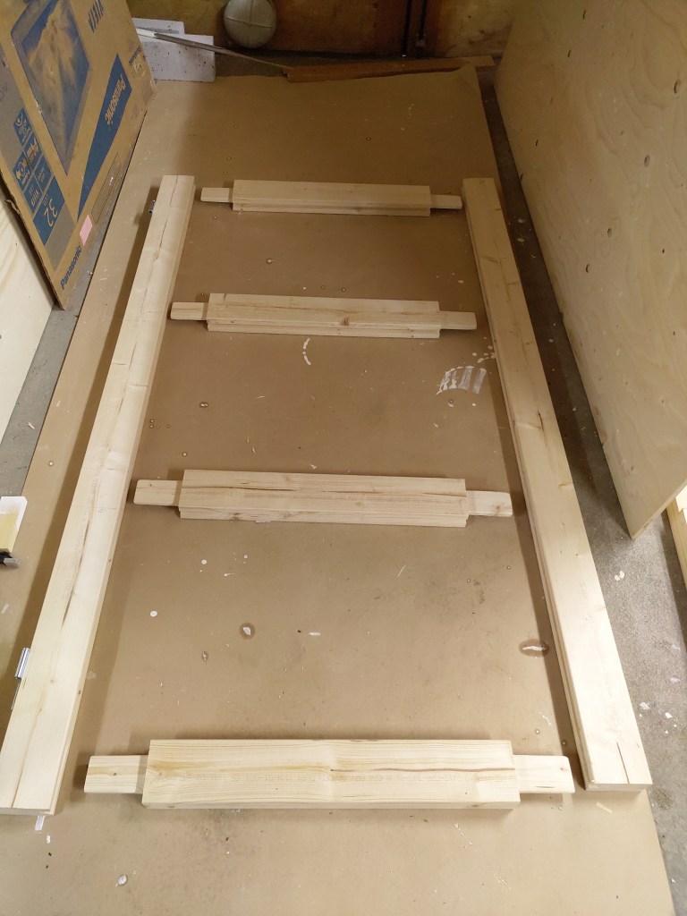 Ovi saatiin askarreltua kokoon varaston perukoille jääneistä puutavarasta ja vanerista. Saatiinpa myös kätevästi varaston oven uusimisen yhteydessä otettua vanha pintalukkokin vielä hyötykäyttöön kasvihuoneeseen.